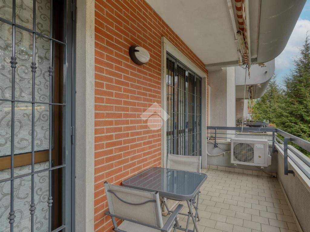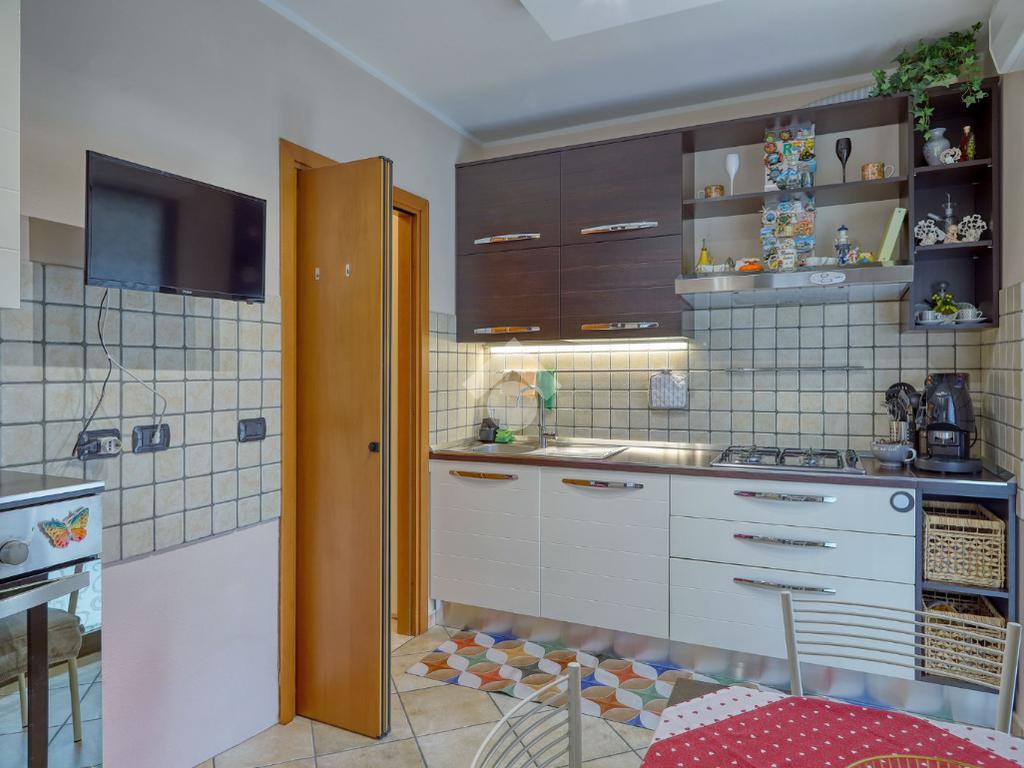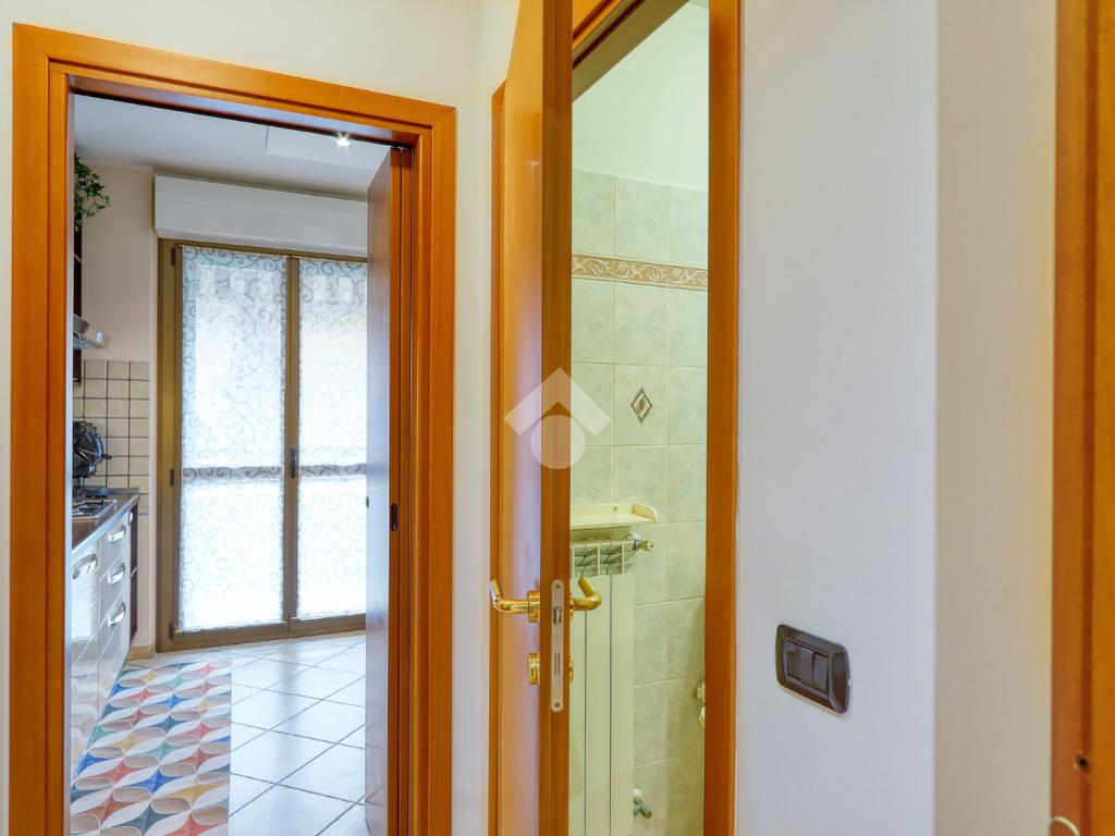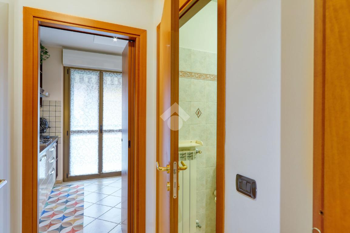 L'ingresso si apre sul soggiorno arioso e ben proporzionato, con affaccio su un ampio balcone, raggiugibile anche dalla cucina abitabile, con annesso bagno di servizio con doccia.