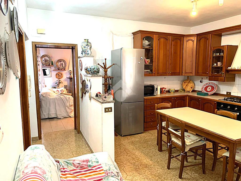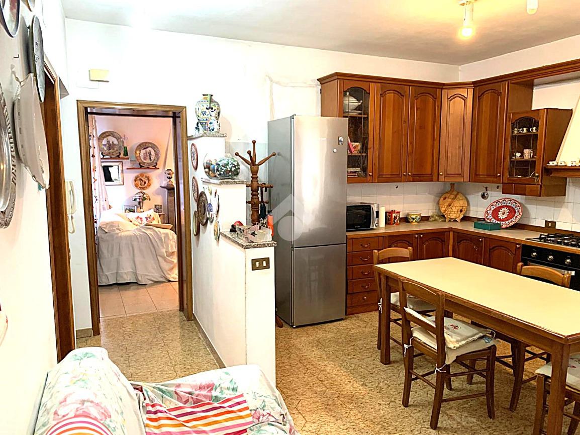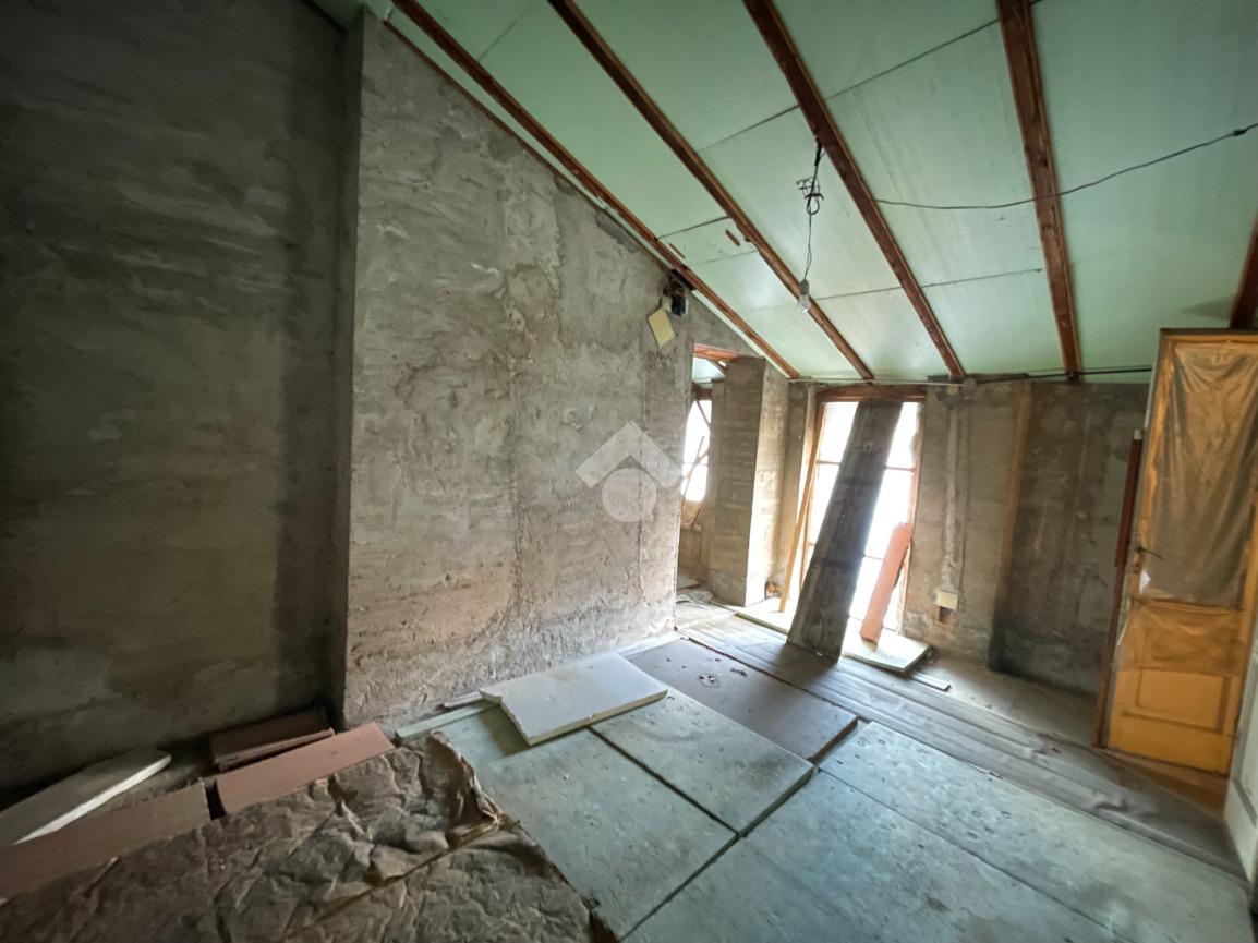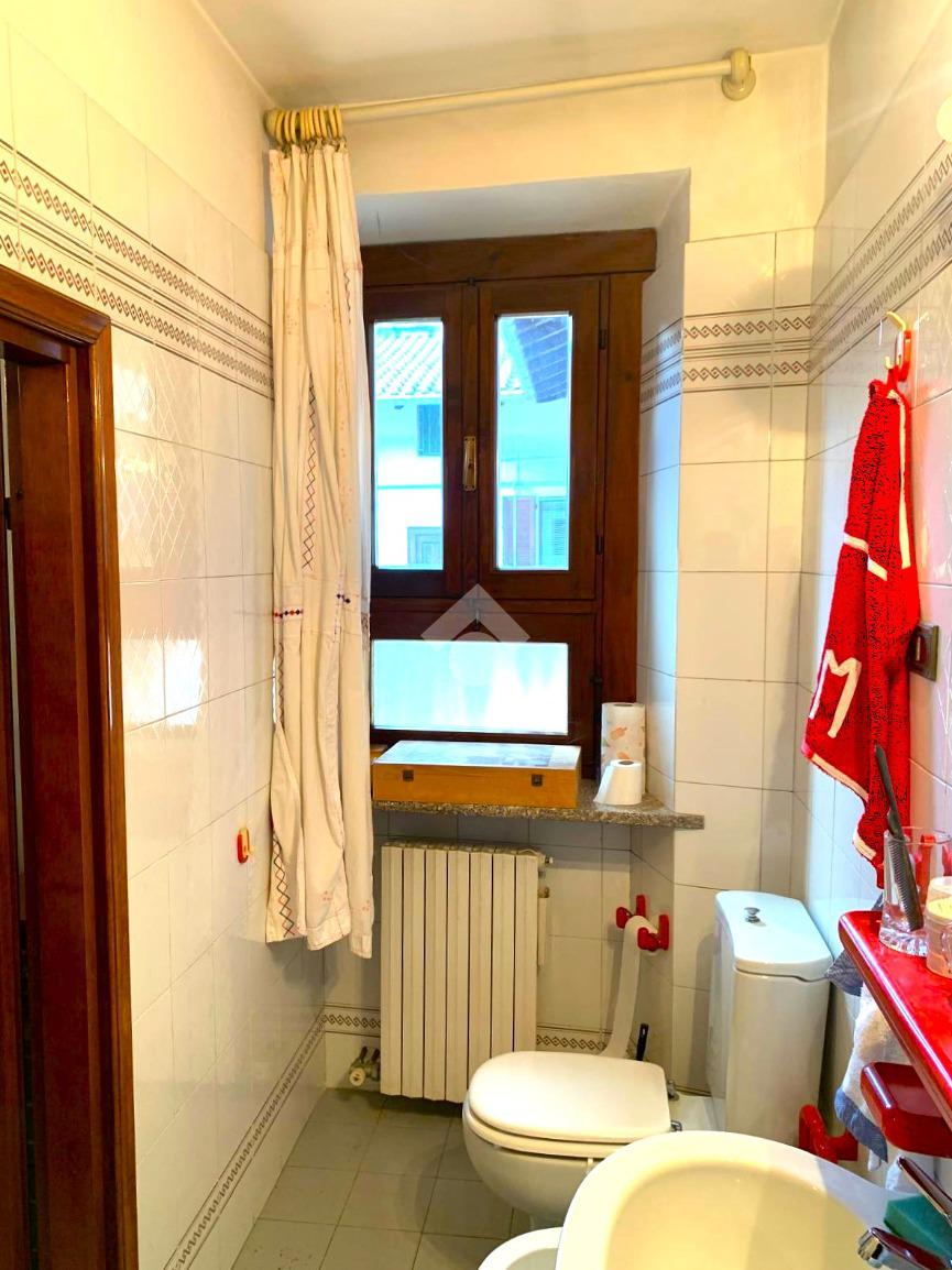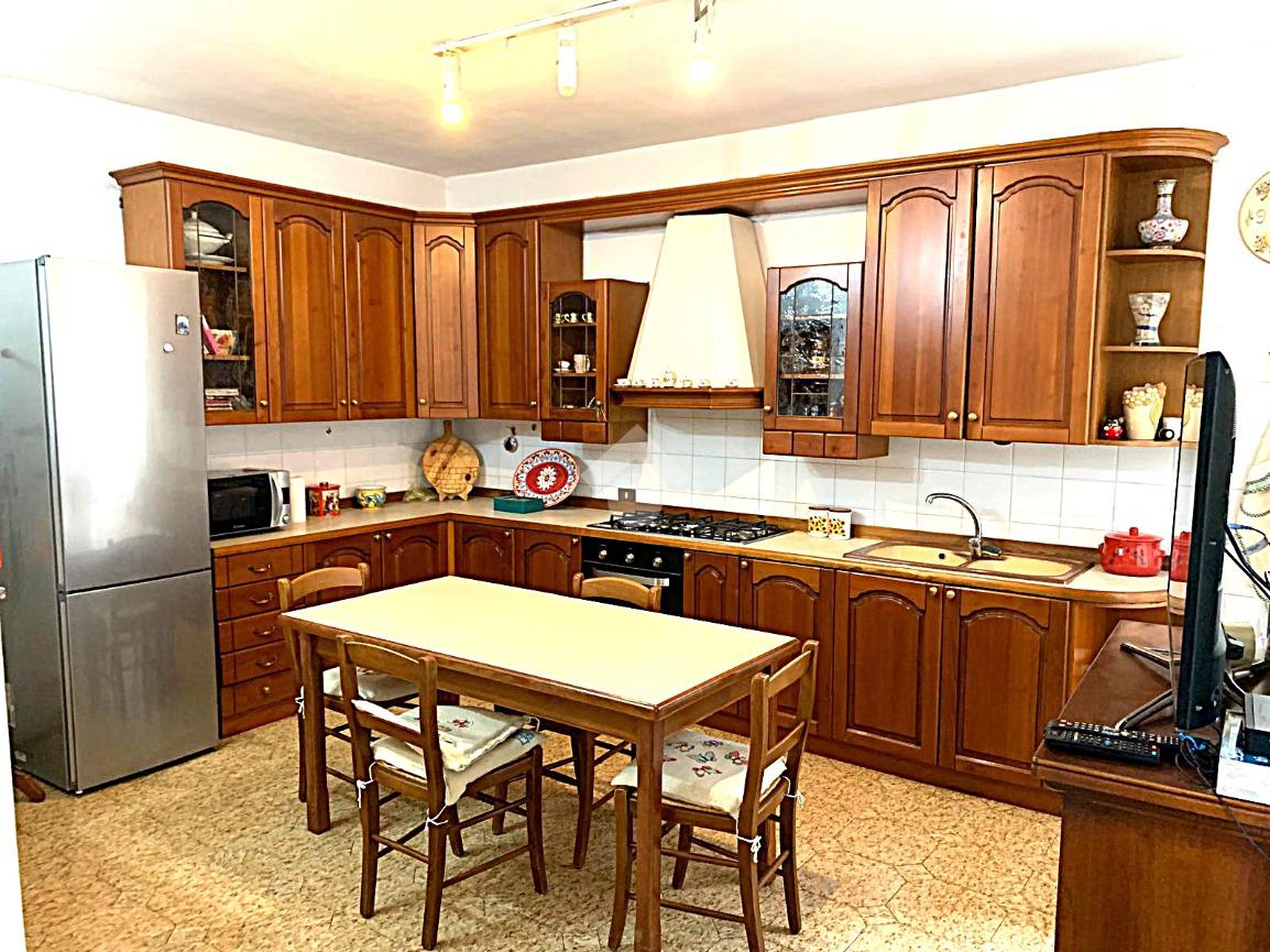 Al primo piano si sviluppa un trilocale in buone condizioni, composto da soggiorno, cucina abitabile, due camere e doppi servizi. La presenza di infissi in legno con doppio vetro assicura un eccellente isolamento termoacustico.
